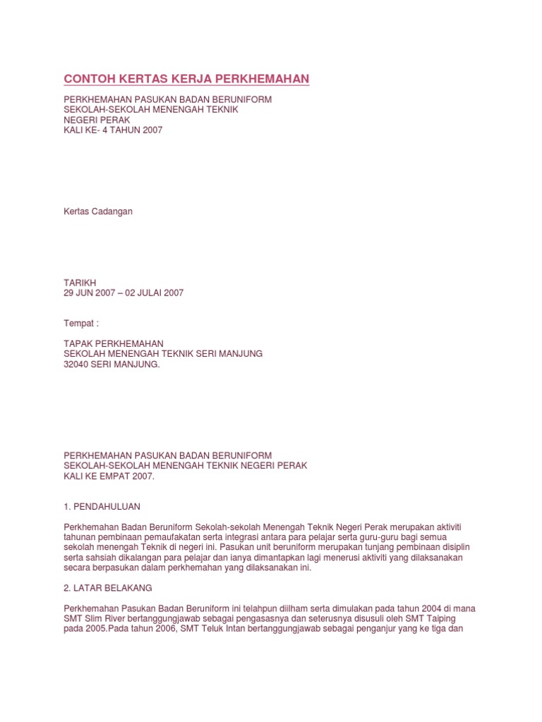 Contoh Kertas Kerja Perkhemahan Pdf