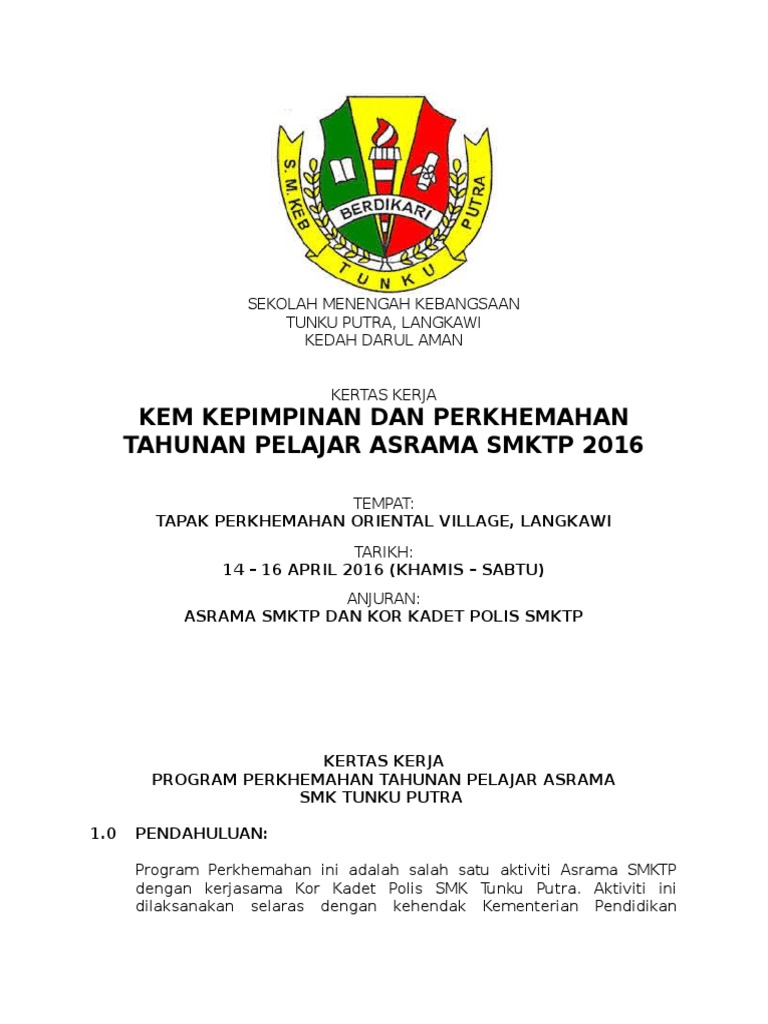 Kertas Cadangan Perkhemahan Tahunan Asrama Smktp Pdf