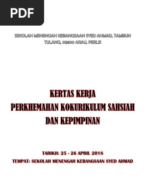 Kepada guru-guru yang ingin melihat contoh-contoh Kertas Kerja Perkhemahan unit beruniform bolehlah rujuk di sini admin. Kertas kerja kokurikulum. Doc Kertas Kerja Kem Kepimpinan Pengawas Norzalina Mohamad Nor Academia Edu.