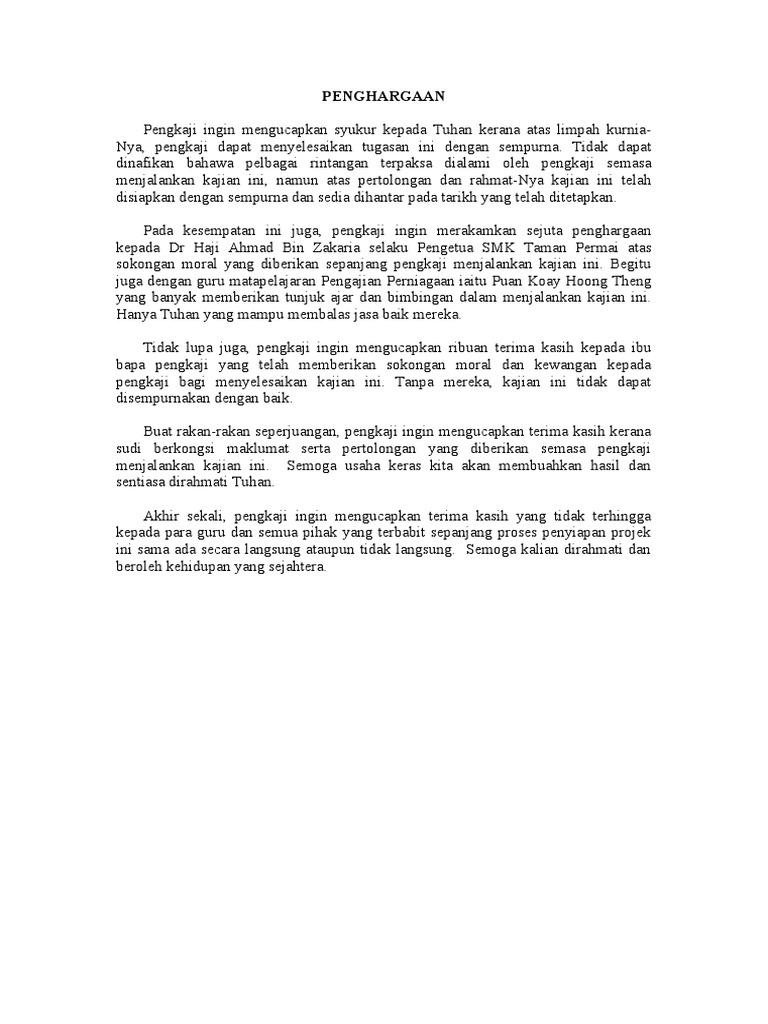 Pengajian Perniagaan Kerja Kursus 2015 Penghargaan Pdf
